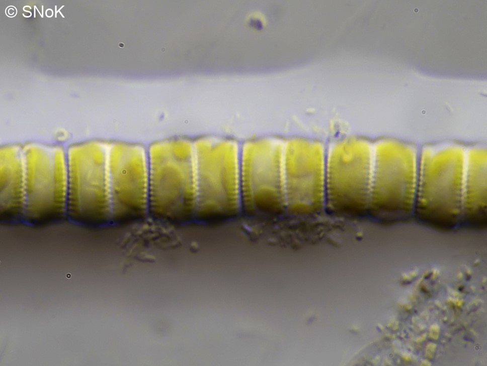 Kieselalgen haben ein hartes Exoskelett aus Kieselsäure. Dieses besteht aus zwei Teilen, die wie eine Camembertschachtel übereinander sitzen. Anders als die Käseschachteln haben sie aber sehr viele kleine Löcher und Rippen, die einen Austausch mit dem umgebenden Medium gewährleisten. Kieselalgen sind stets Einzeller, die sich aber oft zu langen Bändern oder anders geformten Kolonien zusammenfinden. Sie betreiben Fotosynthese mit Hilfe von Chlorphyll in Pastiden. Dieses wird aber, wie bei den Goldalgen, durch Fucoxanthin überlagert, wodurch sie bräunlich wirken. Durch austretendes Zellplasma können sie sich langsam bewegen. Es gibt eine große Gruppe von Mikroskopikern die sich fast ausschließlich mit den Skeletten von Kieselalgen beschäftigt, sowohl fossilen als auch rezenten, also noch lebende Arten. Die Kieselalgen in den Meeren erzeugen genauso viel Sauerstoff wie alle Wälder dieser Welt zusammen.